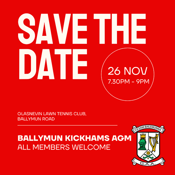 We also invite motions for consideration at the AGM. Motions should be submitted by midnight Wednesday 5 November 2025 in writing by email to secretary.ballymunkickhams.dublin@gaa.ie.