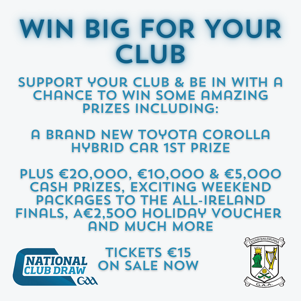Now in its 13th year, the GAA's National Club Draw (NCD) has been a game-changer, boosting revenue for clubs across the country. Tickets are just β¬15 and all proceeds raised through the tickets sold by Ballymun Kickhams will be invested directly back into our club and our juvenile teams.